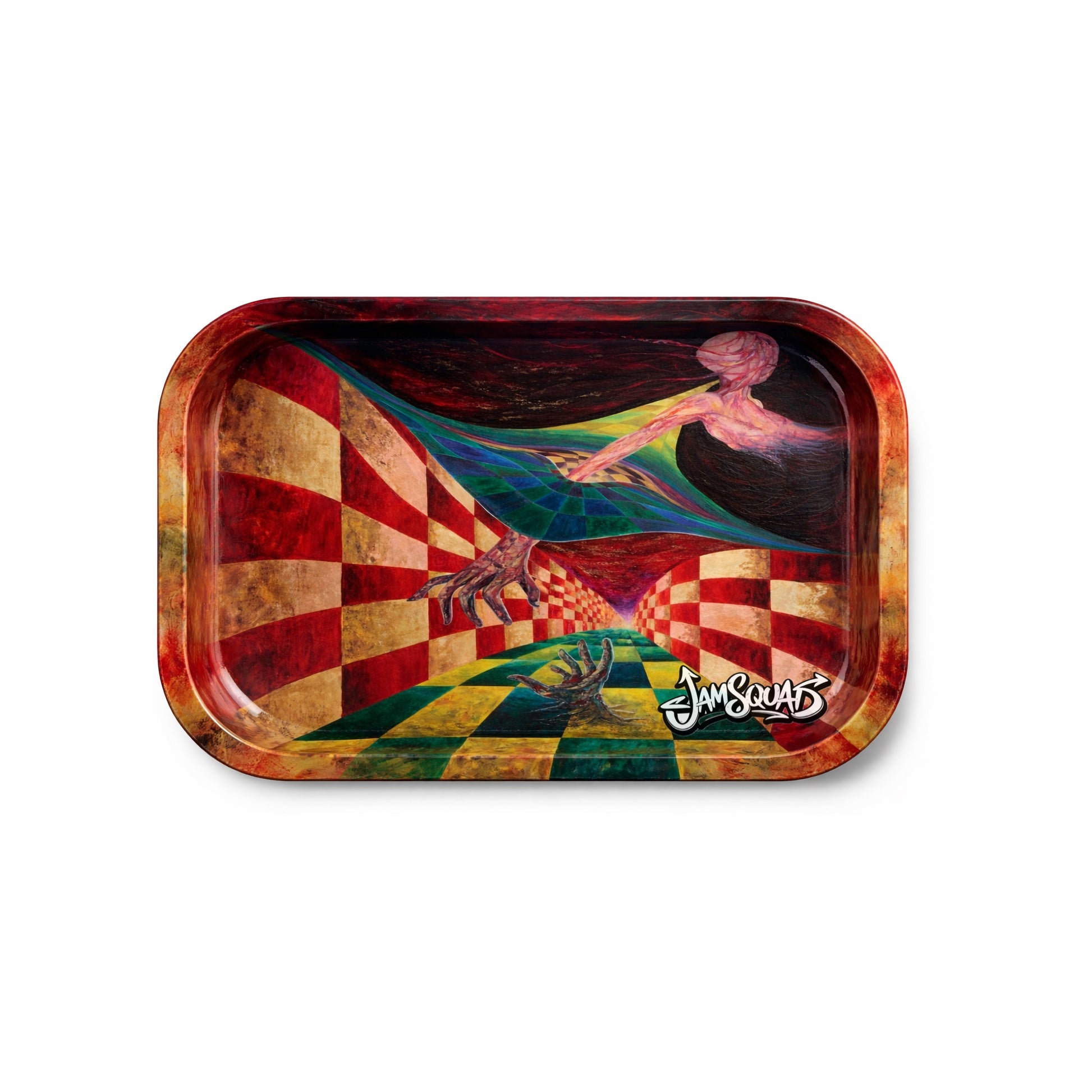 The Infinite Descent Edition pulls you into a warped dimension where reality bends and depth has no limit. Featuring a cascading checkerboard illusion and a flowing, abstract figure, this design creates a powerful sense of motion, tension, and transformation. The rich reds and deep tones give it a bold, immersive presence that commands attention.